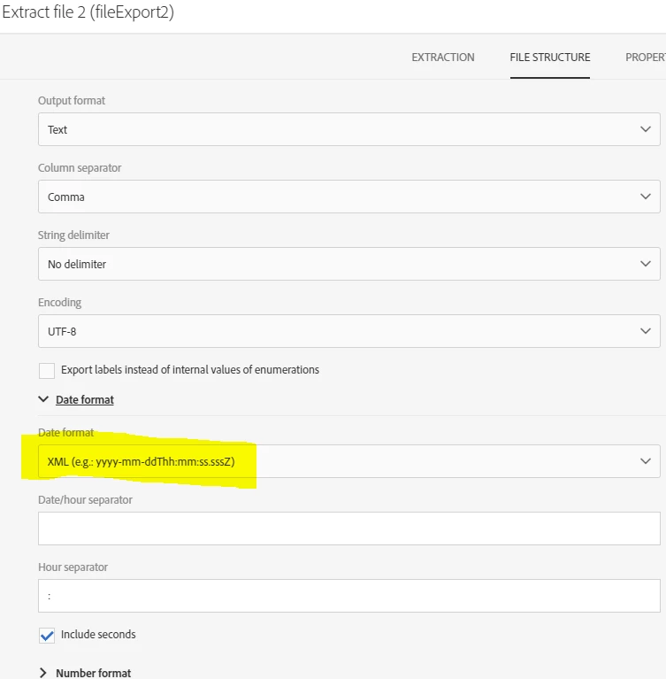 I have an Export workflow, that extracts data from tracking logs and recipient schema and is storing the data in a .csv file. I have a requirement that while extracting date-time data we should be displaying in file (example as 2018-05-02T13:47:33.743Z) this.