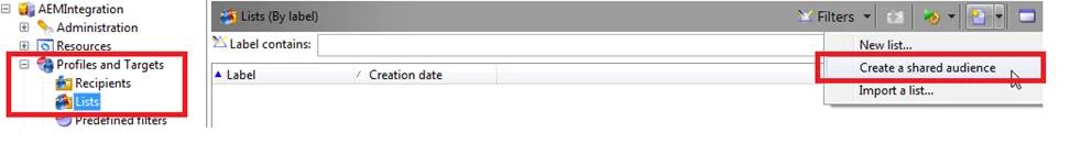I need to create a shared audience by importing an audience created in Adobe Audience Manager. For that I need this option "create a shared audience" at :