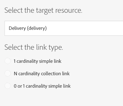 In ACS what to select in schema link field to enable this revCardinality="Single".