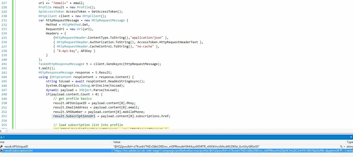 Content = new StringContent("{\"subscriber\":{\"Pkey\":\"" + p.APIUniqueID + "\"}}")
