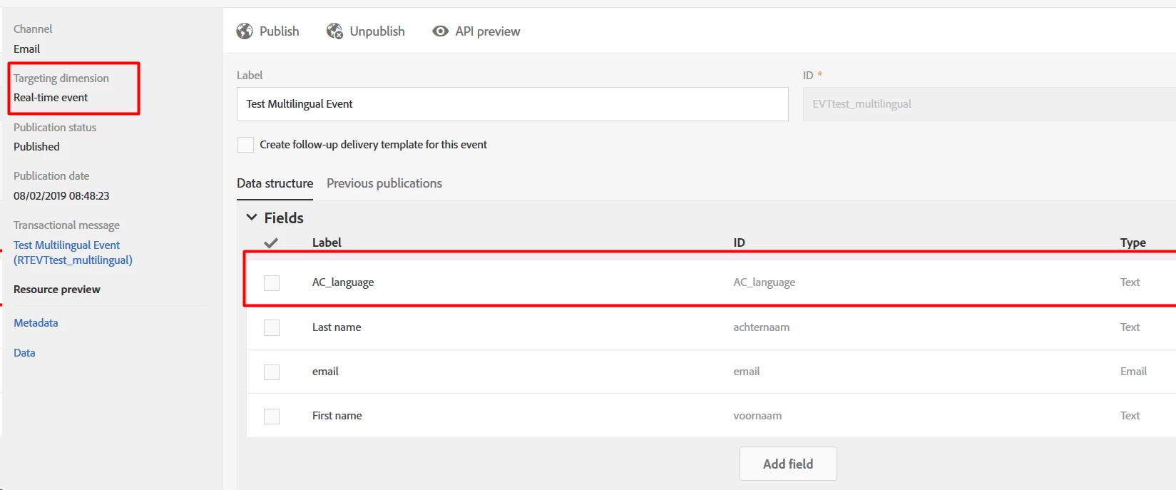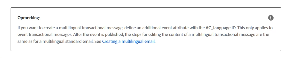 However, when I create event transactional message, no multilingual email is created.