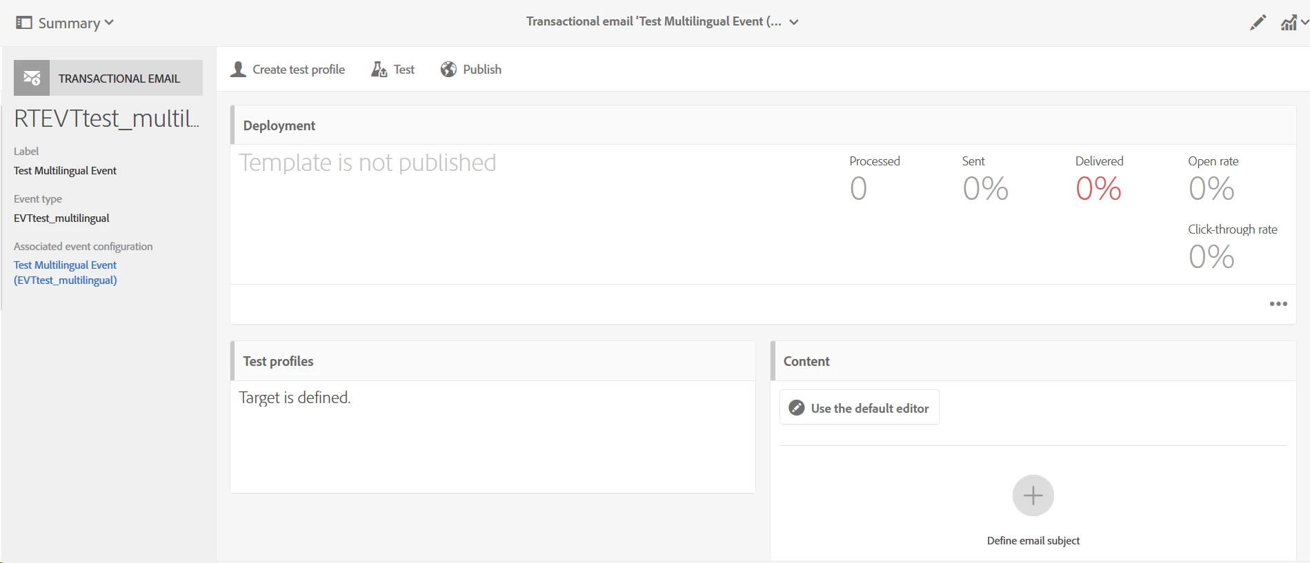 This screenshot shows no multilingual email is created:
