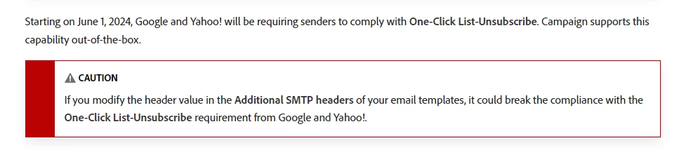 Now I saw about modifying SMTP parameters could break the OOTB One-Click List-Unsubscribe: https://experienceleague.adobe.com/en/docs/campaign-standard/using/administrating/configuring-channels/configuring-email-channel#list-of-email-smtp-parameters