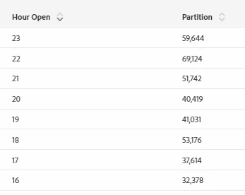 Bear in mind that your profiles can open the same delivery more than once. Adding a dedup step before your partition, to filter only the first open per profile and delivery might be useful.