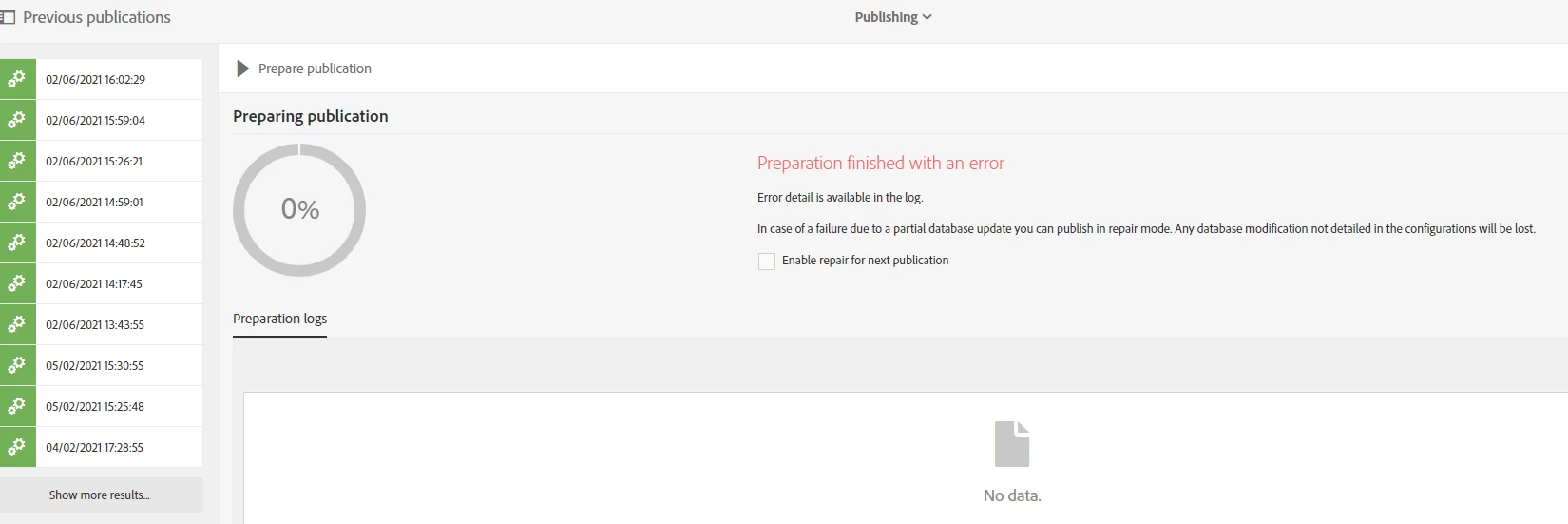 I am trying to publish but I am getting this error with no error detail. Any suggestion?