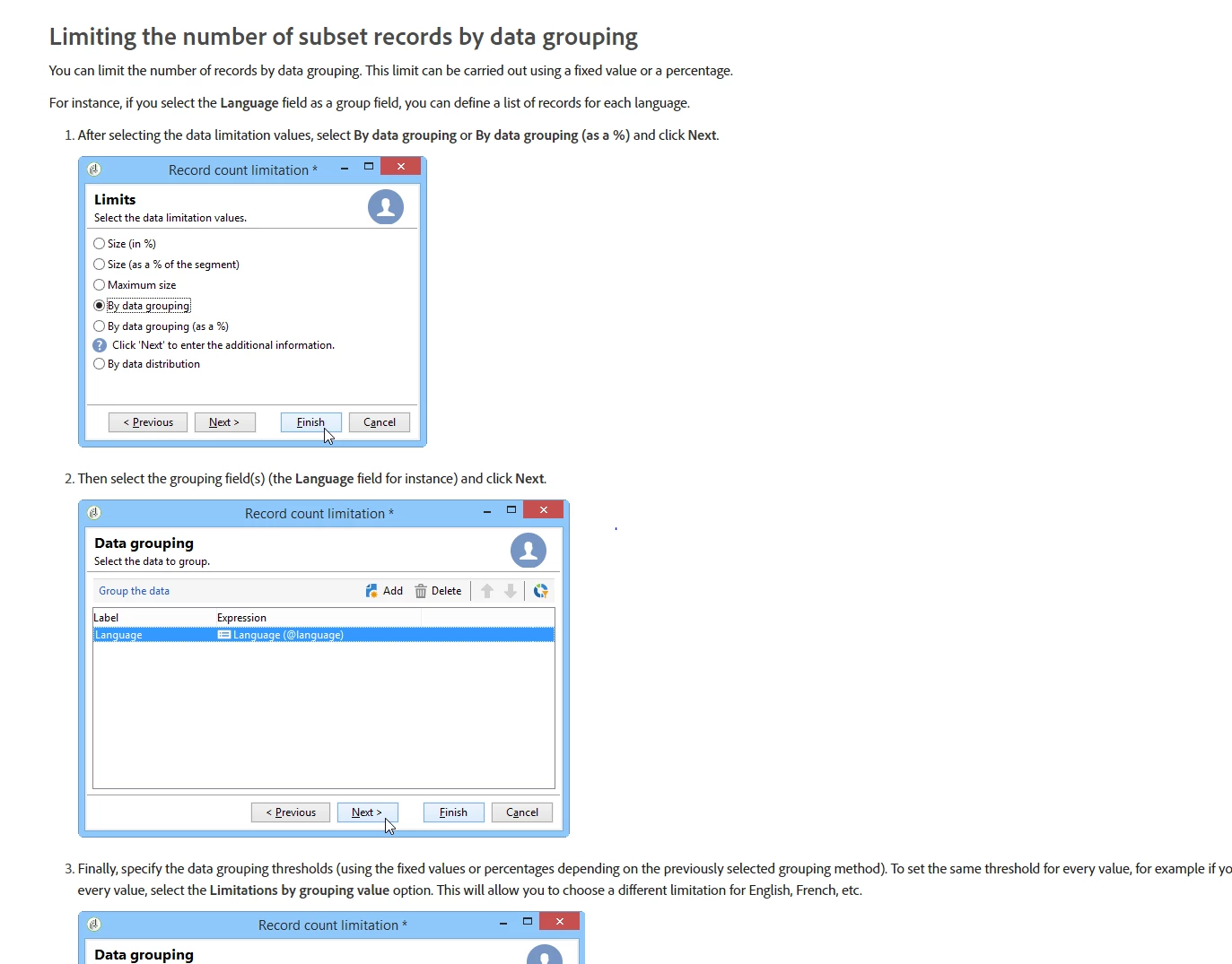 By data grouping (as a %): you can limit the segment population according to the values of a specific inbound population field by using a percentage. Select the field to apply the grouping, then specify the values to be used.
