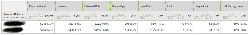I found some differences at reports in Adobe Campaign.
