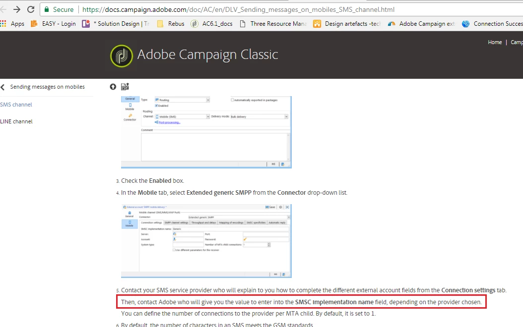 We are trying to connect an external account (SMSC). How can I obtain SMSC Implementation Name.