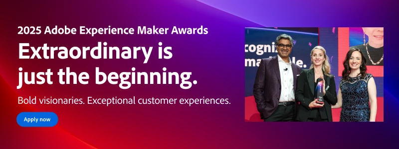 The future of customer experience is shaped by digital innovators. We’re seeking those who have revolutionized their organizations and industries with cutting-edge digital strategies using Adobe Experience Cloud applications over the past year. If that’s you, apply to be celebrated in one or more of our 9 categories for the 2025 Adobe Experience Maker Awards. Learn more and apply today!