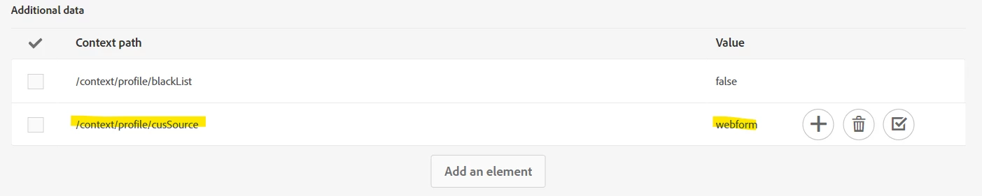 Target profiles imported from landing page in a query