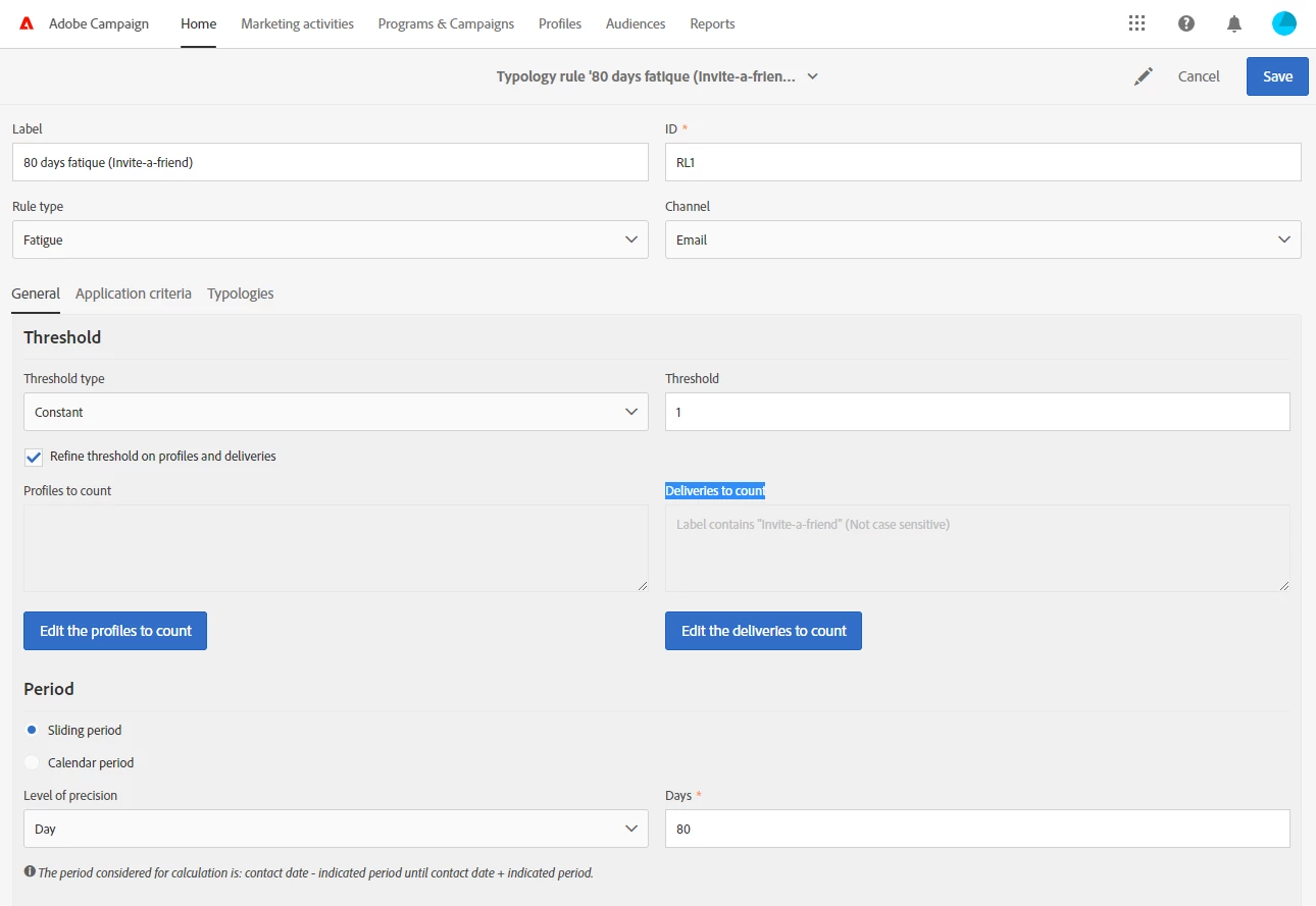 - "For fatigue rules to work, you need to define a contact date for your delivery. If you choose to send messages immediately, the fatigue rule will not be applied."