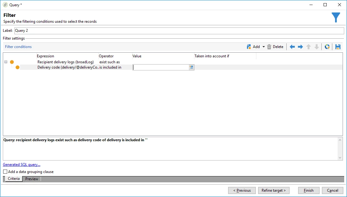 I would like to create a workflow for reporting purposes, that would automatically use data relative to the last sent deliveries as an input to formulate queries and collect some data (tracking logs for example).