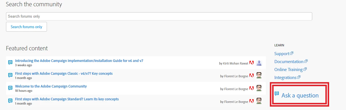 We're glad you're here. This forum space is here to provide you with a friendly environment where you can discuss Adobe Campaign. If you have any questions about Adobe Campaign feel free to post them here.