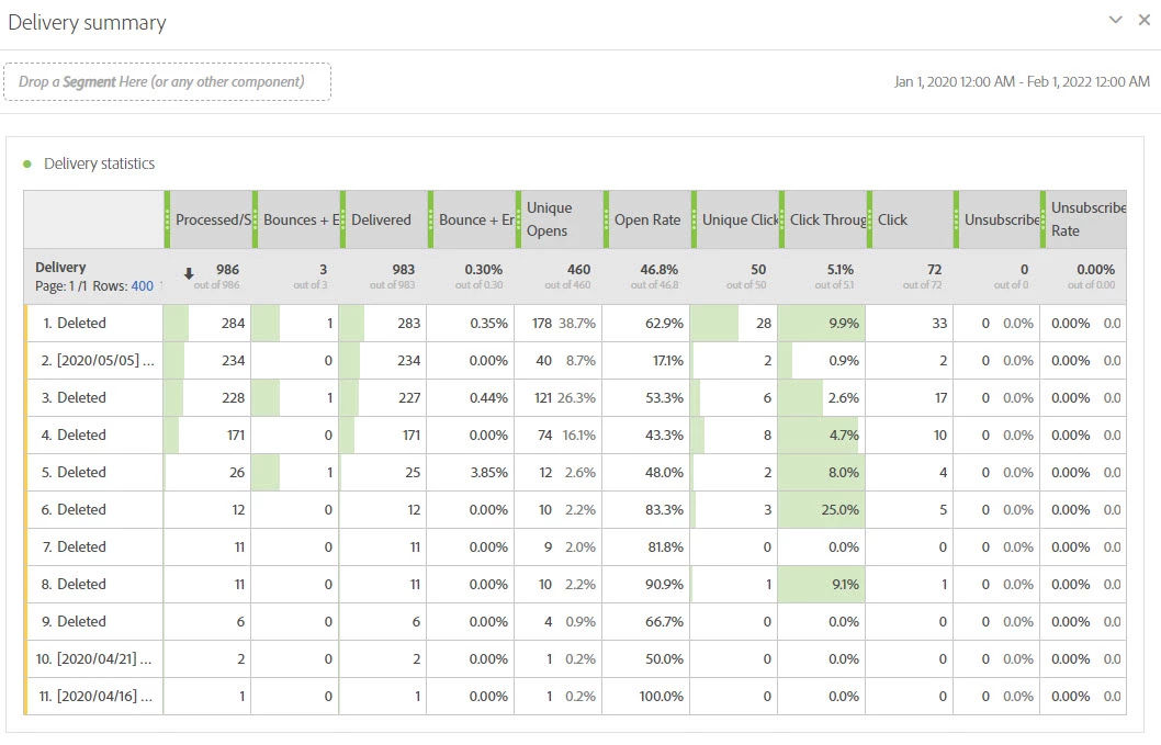 Deliveries that are sent already and deleted from ACS will show in report as "Deleted".