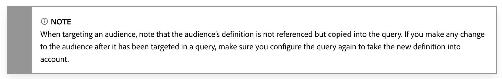 I created a workflow template which contained a query activity, pointing to a query audience.