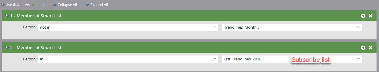 I'm trying to compile a list of those people who infrequently open our weekly newsletter so I offer them a change to monthly (starting with a limited number of people). Unfortunately Marketo only has an option for the minimum number of times someone has opened an email, not the maximum. Due to that I tried to make a smart list of frequent openers and then another smart list of subscribers not in the frequent openers smart list... It says that is a circular reference and won't work.