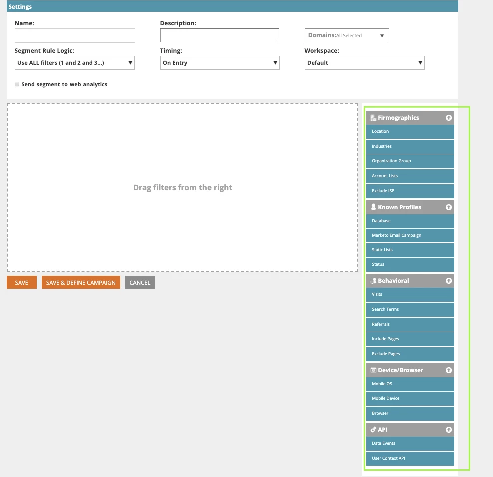 Web Personalization - This is the new name for the formerly know as Marketo Real Time Personlization (RTP). The web personalization would need to be purchased as an add on and is not included in the basic subscription. Web personalization is used to create personalized web campaigns like Dialog Web Campaign, In Zone Web Campaign and Widget Web Campaign. Important thing to understand is, the word segmentation is different when you are referencing it with Web personalization as supposed to the usual segmentation we use while working with dynamic content. In we personalization, when we say segmentation, what we are referring to is the Web Segments - Which is basically a group of "Web Visitors"  that we want to target depending upon their attributes like Geography, Persona, static list etc. Below are the various attributes you can use to create your web segment. You can read more about web segments  - Here.