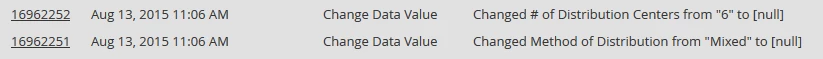 I have no idea why these fields would be reset - this does not happen with fields other than those we're including in these forms. Any ideas as to why there would be a systematic reset of these fields!?! I'm stumped. Here's what the action log looks like: