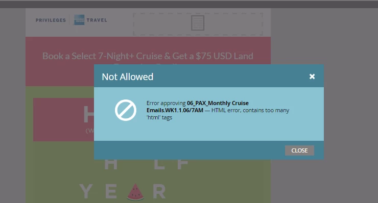 I'm working on an email that needs to go out ASAP and I can't approve it because of this error below....Can someone please help??