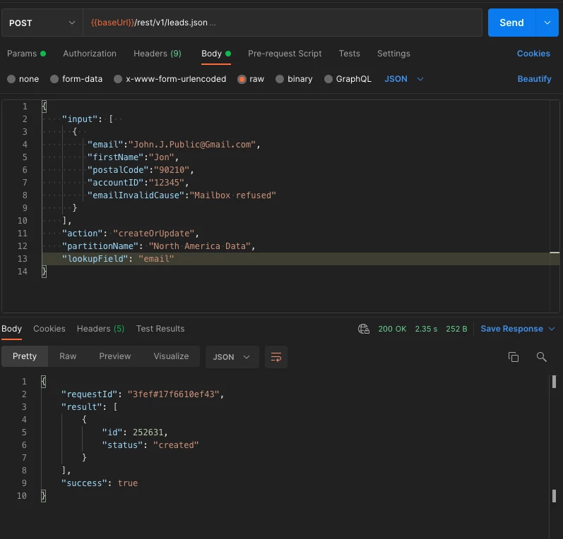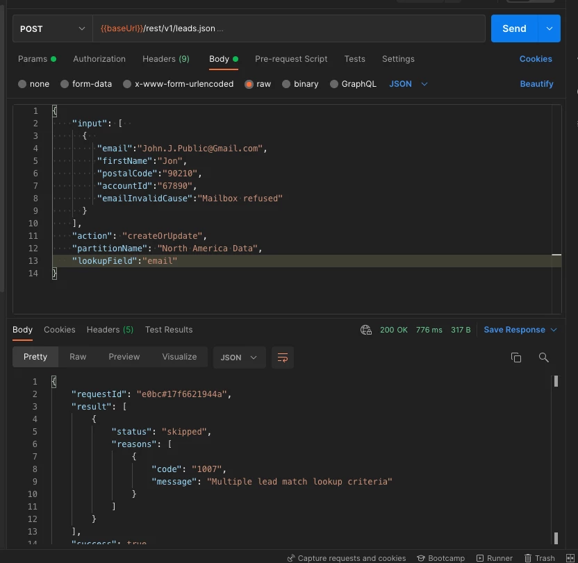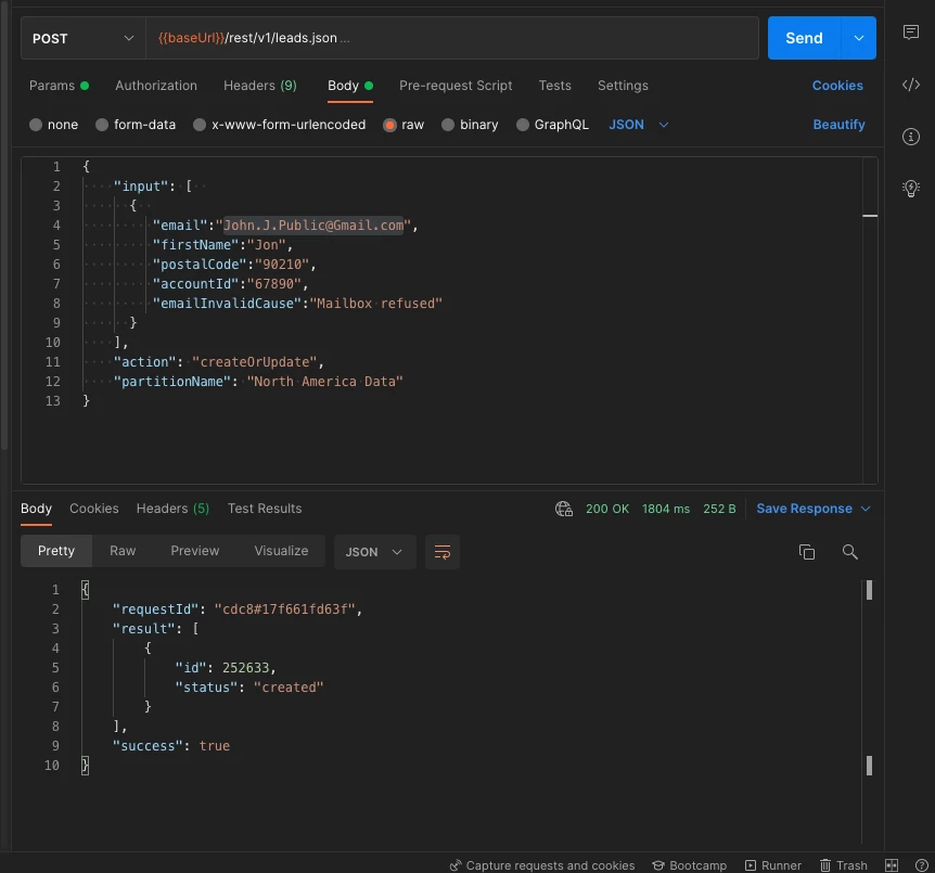 Note that gets worse if you already HAVE duplicates in place (remember, Marketo, a "duplicate" is two person records having the same email).. and you subsequently INCLUDE the "lookupField" in your payload. At that point, you'll have a problem. Strictly speaking, it's an error but in reality, it's just the API letting you know that you can't upsert a Person when you aren't uniquely identifying a Person.