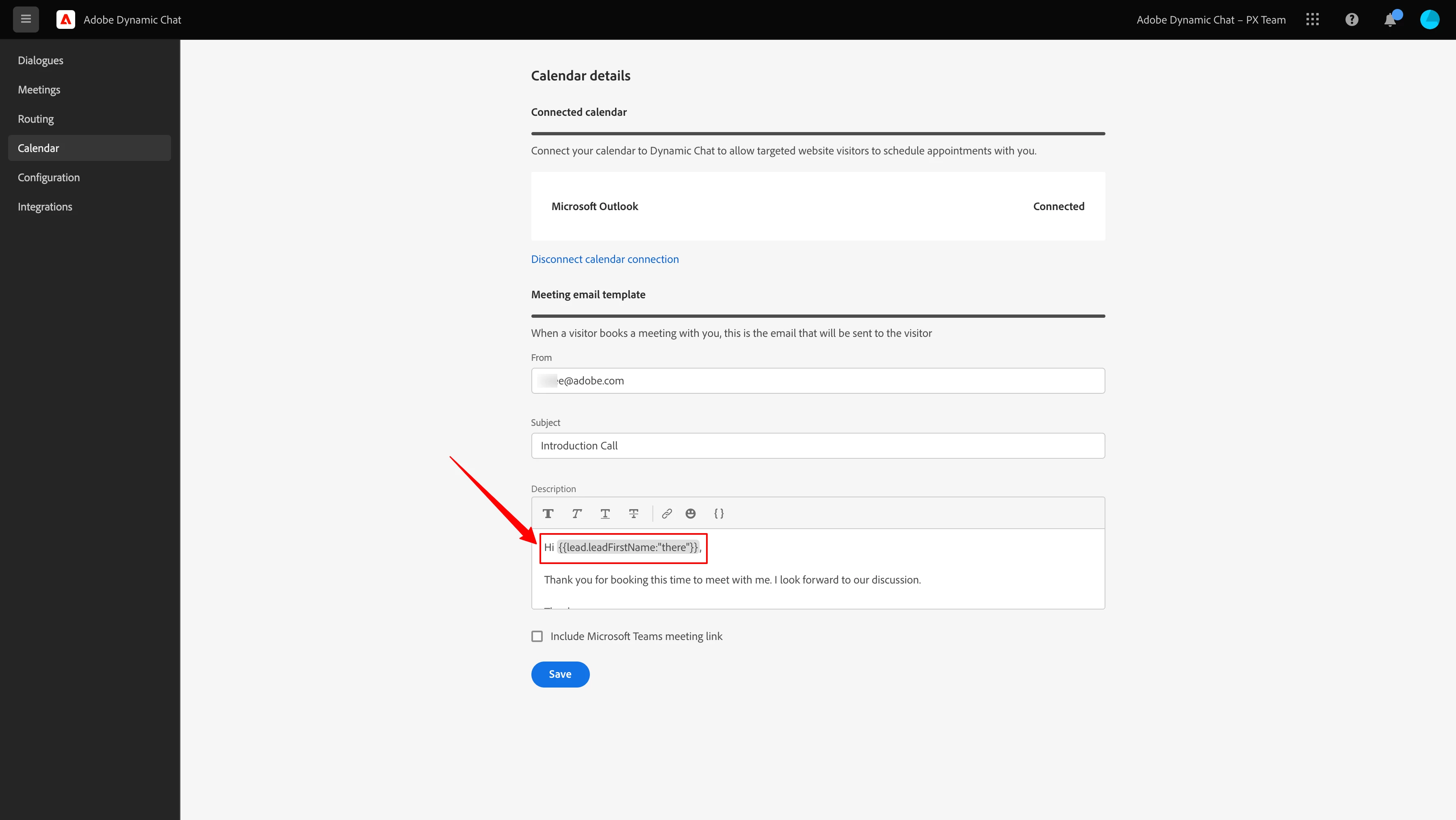 Add tokens to your meeting booking email
