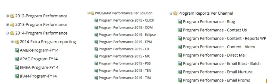 - Use Consistent Naming Conventions: Using a combination of RCE reports, you can create a dashboard in Revenue Cycle Explorer. In order to achieve a clearer overview of your leads, campaigns, opportunities, etc, you must keep your reports organized with a consistent naming convention.