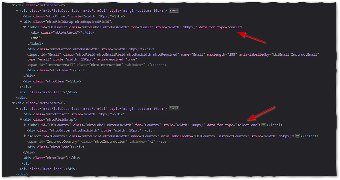 <label id="LblProductInterest" for="ProductInterest" class="mktoLabel for-type-radio"><label id="LblIndustry" for="Industry" class="mktoLabel for-type-select-one">