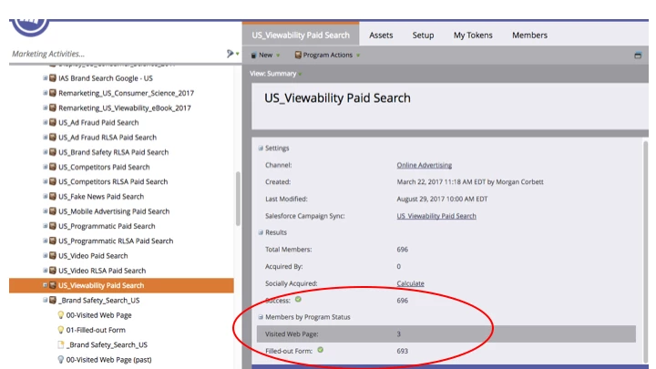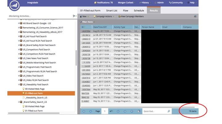 3. MARKETO PROGRAM SMART CAMPAIGN RESULTS (for tracking filled out form):