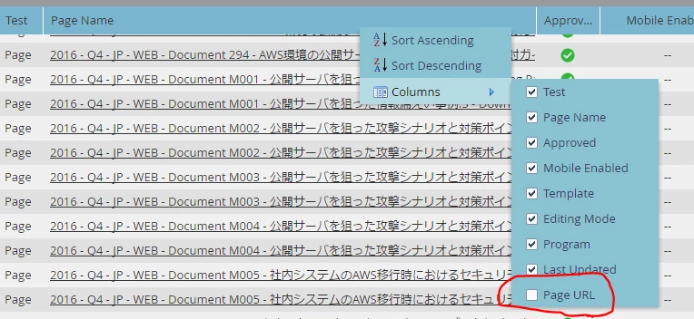 こちらを見ると、Page URLという項目が出てきますので、これをチェック。
