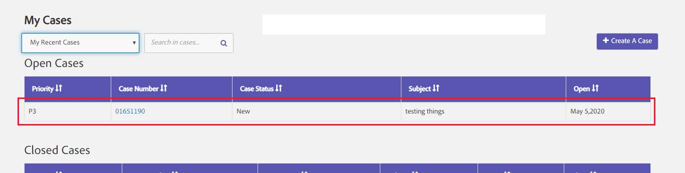 - Once you have filled out all of the required fields, you will then click the “Submit” button you will be redirected back to the support portal and should see the ticket there. From here you can click the “Case Number” button to navigate to the case page within the support portal.