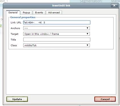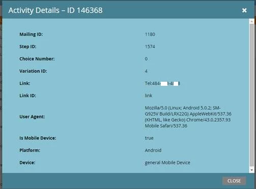 If you leave this link just like this, where it is trackable and encoded by Marketo, the click to call functionality won’t work. You need to set the link to classmktNoTok in order for that functionality to work without sacrificing the ability to track clicks on the links.