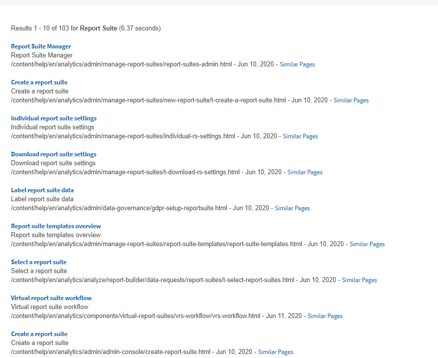 I finally clicked on the first link today out of curiosity, but I threw up my hands in frustration the first time I did the search. I've been using Adobe Analytics for 7 years, and I'm thinking to myself, I don't need information about the Report Suite Manager, I just need to grab a simple definition for my users!