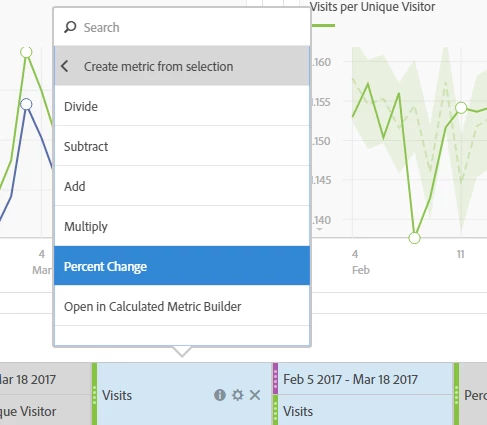 When I try to create a metric based on my selection, and ask for percent change, what I really want is for each day to be compared against each other e.g. Feb 4th 2018 vs Feb 5th 2017 (current day vs current day -364).