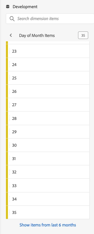 Hi Team, one question regarding "Day Of Month" dimension populated automatically by AA. I'm seeing entries more than 31 (even though there is no count associated to any metric so far), but per this document I assume we should only have the values from 1 to 31? Any idea what might be the reason having 32 to 35? https://experienceleague.adobe.com/docs/analytics/components/dimensions/day-of-month.html?lang=en