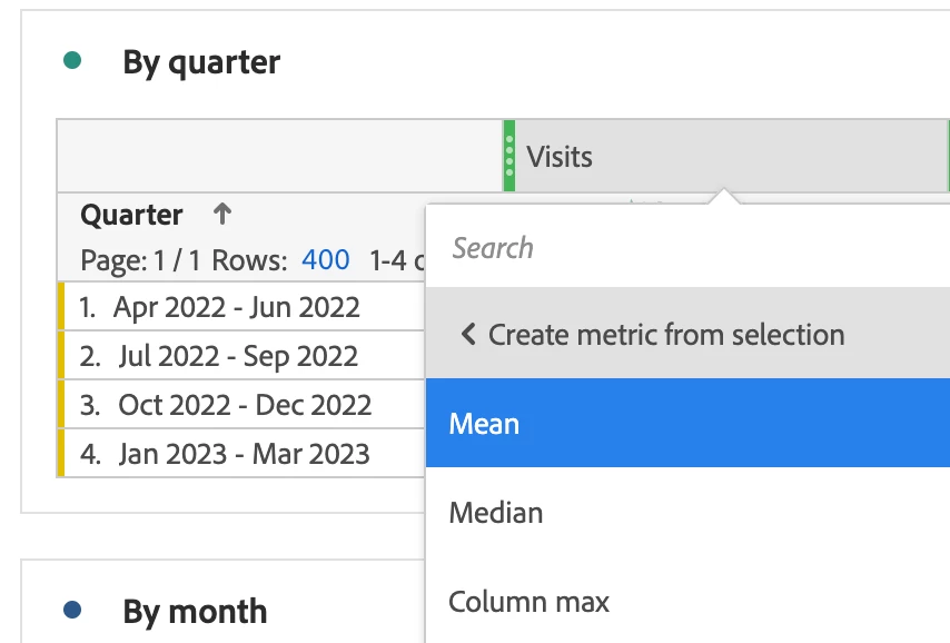 Adobe Analytics Calculate Metric Questions/Monthly Average Metrics