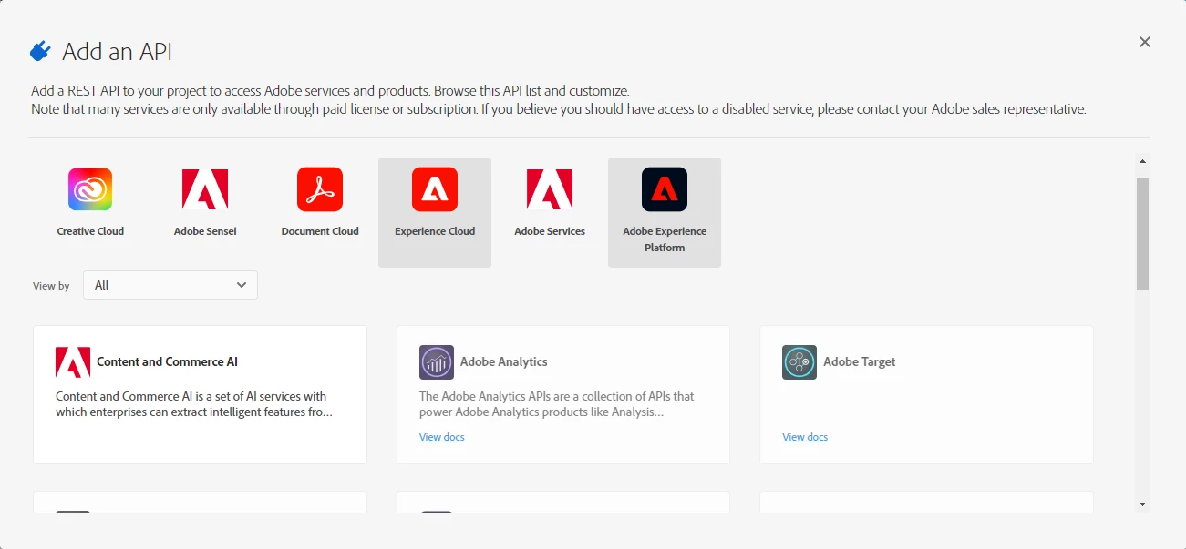 and while trying to add API for Adobe analytics which is disabled. I can only see AI Commerce and content available to me.