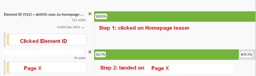We want to create a fallout report where a user clicked on a tracked Teaser Link on the Homepage that leads to the Page X.