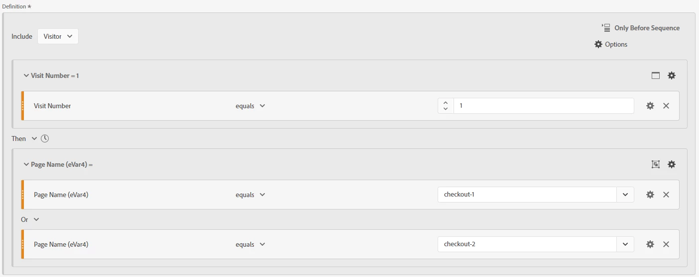 I'm tryin to compose a segment where a user enters our site for the first time and then eventually (at some point in their user journey) enters our checkout process. I want to see all pages they consumed before reaching the checkout URL, but I don't think the Sequential Segment I built is giving me the correct results.