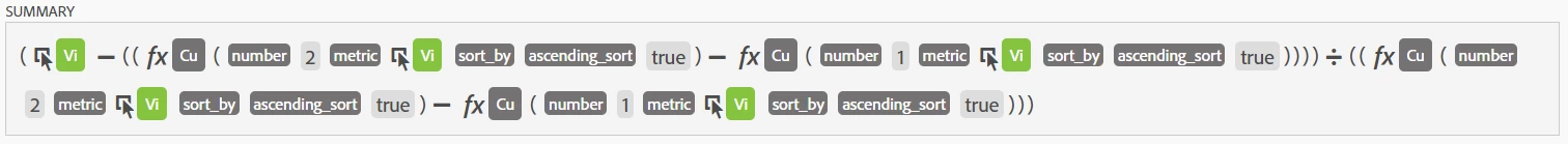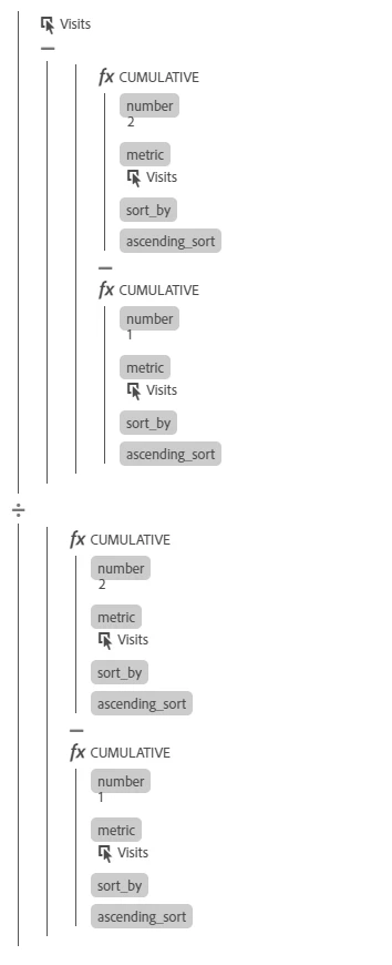 (Visit - ((function Cumulative (number 2 metric Visit sort_by ascending_sort true) - function Cumulative (number 1 metric Visit sort_by ascending_sort true)))) / ((function Cumulative (number 2 metric Visit sort_by ascending_sort true) - function Cumulative (number 1 metric Visit sort_by ascending_sort true)))