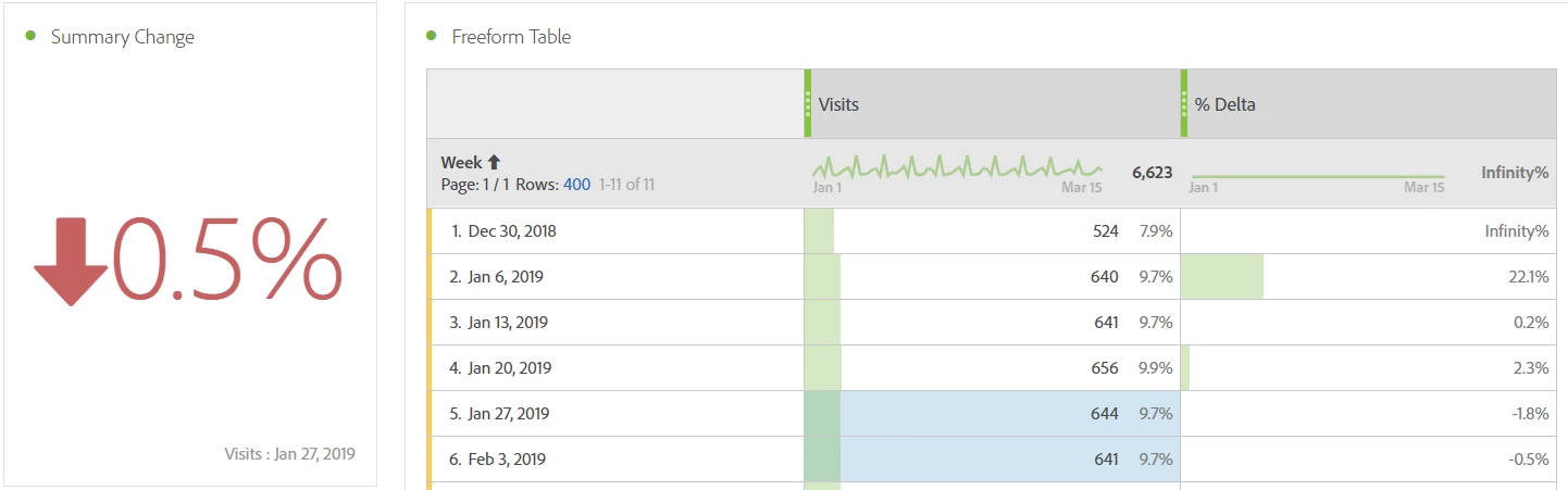 See summary change for highlighted week/month with the corresponding week/month row value. % delta value should match with it. See snapshot above.