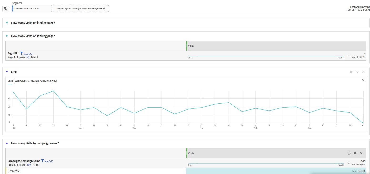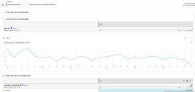 - There is traffic being attributed to a specific campaign name, even though this campaign has not been active for over six months. (visualization: visits by campaign name)