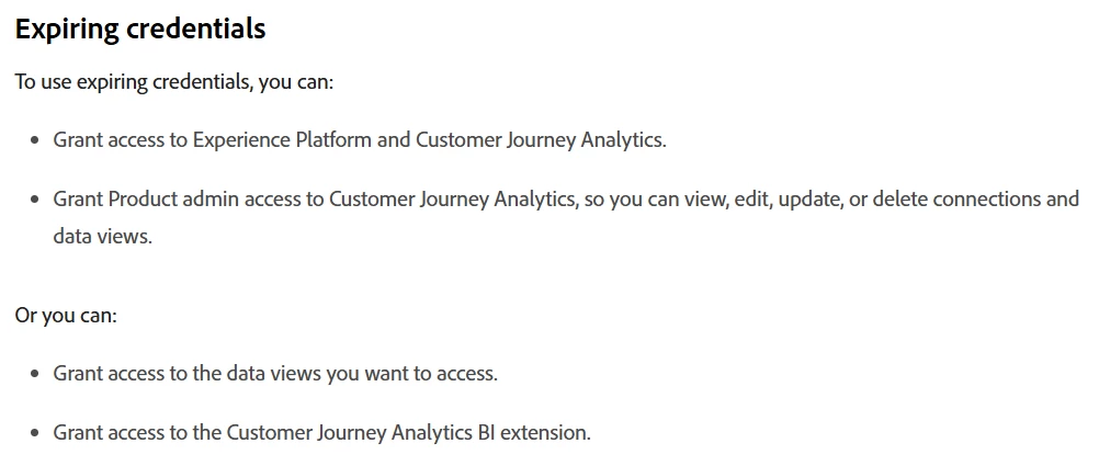 Hi - I am following the below documentation for setting up an API connection from CJA to PowerBI using PostgresSQL. I am using the expiring credentials for now to test what I want to see in Power BI before setting up the non-expiring credentials. When I try to connect the PostgresSQl to PowerBI, I keep receiving this error. My credentials are not expired. Has anyone received this same error message? If so, can you please provide what steps you took to troubleshoot? I have tried to troubleshoot myself and have not been able to figure out what to do.