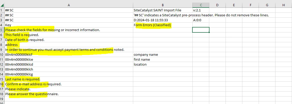 We have a list eVar configured to capture the web form's field level errors, like "first_name", "company_name" etc.., when they are triggered. With the recent development change, some of these field name values are started to capture as unique number which looks something like this "00n5000000wfov".