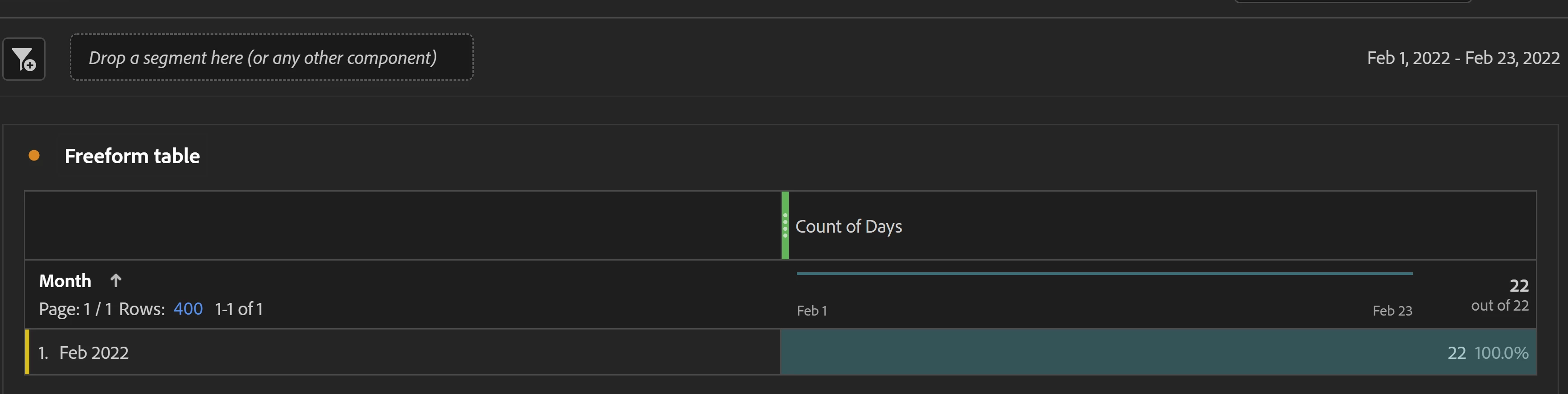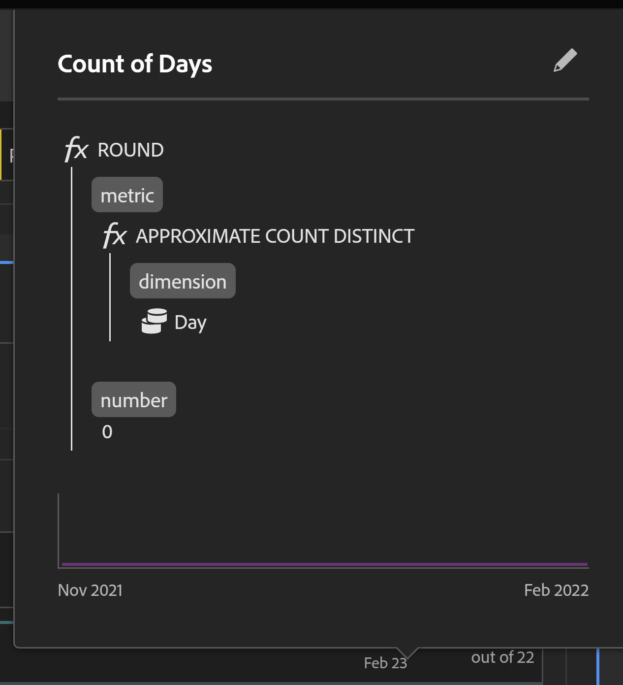 As you see my selected Time Frame is Feb 1 - Feb 23 and the count of days metric is showing 22. This happens very randomly and would like to know what causes this ? What is the best way to dynamically measure count of days besides the count distinct ?