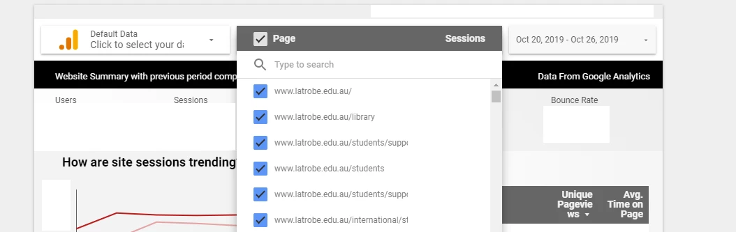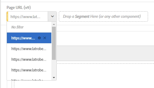 I'm wanting to recreate this in workspaces but we have over 300,000 page URL's (or if looking by the page name, 22k) - is there any easy way to get ALL url's to show up in a drop-down menu in workspaces without waiting for them all to load in the right-hand side menu then shift+selecting them all? Or is there a better way to approach this?
