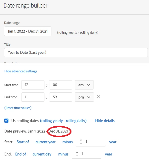 So I dit this: same definition for the second one by adding minus 1 year but result is not ok in the preview