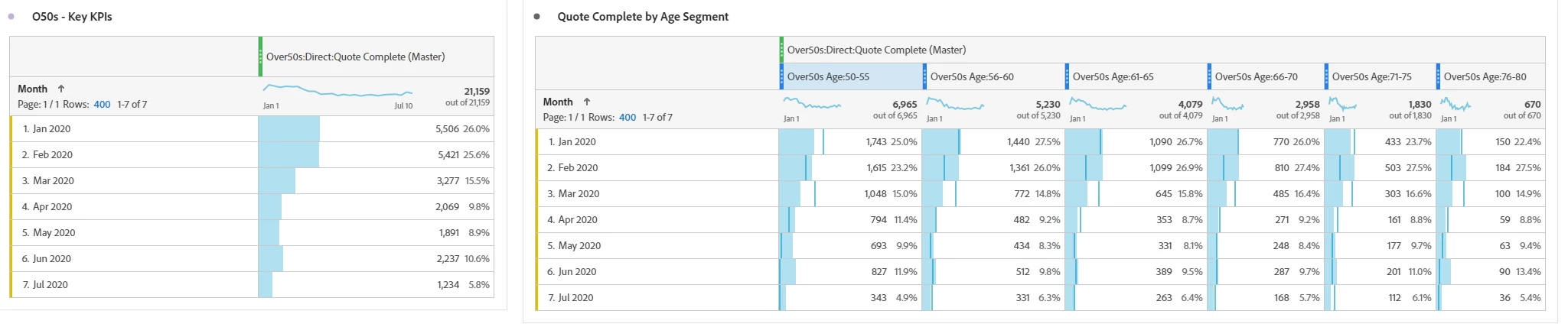 However when i duplicate the table and break it down further by a custom segments to split this figure between age ranges for some reason the total of all the new columns is more than the original.