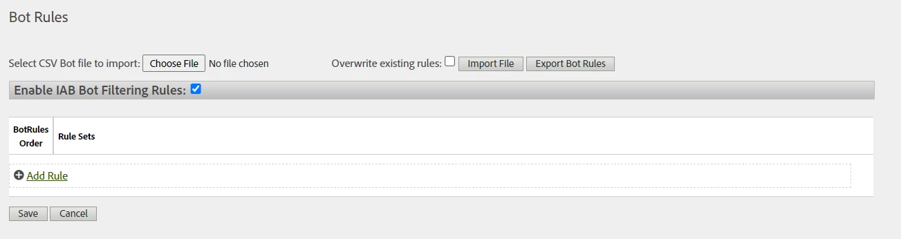 For Bots, you will go into your Report Suite Management, and you can choose one or many suites to apply the rules to; under: