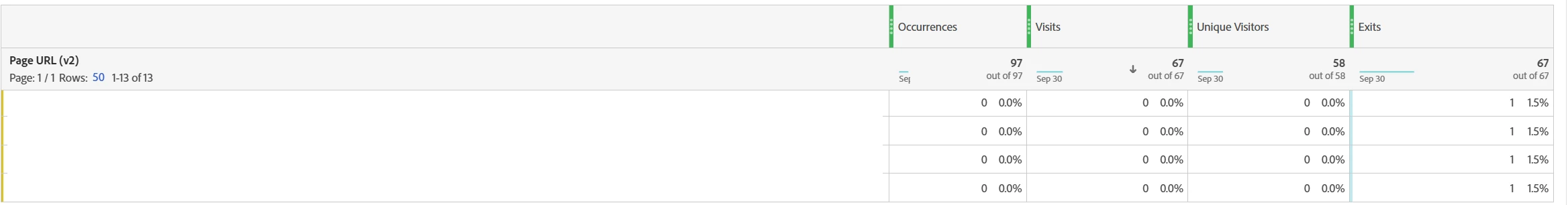 Added users, visits, time on site - all were going good. Apparently, added Exits and here popped up suspicious pages with 0 visits, but exits. First I thought something is setting this variable somewhere else, but occurrences are 0 which for me means, that this value was not set in image request.