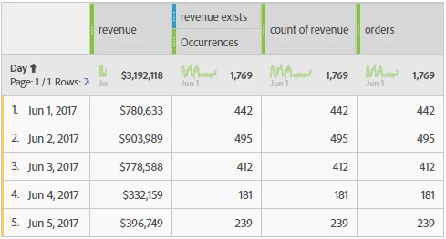 Calculated Metric: count of revenue